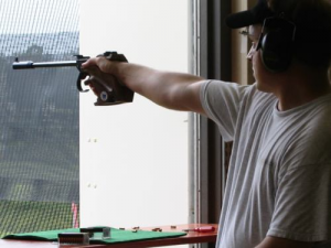 The center of the target is 50 mm in size, and the gun must be fired, single-handed, in the standing position. In the following final, 10 shots must be completed within a maximum of 75 seconds per shot.